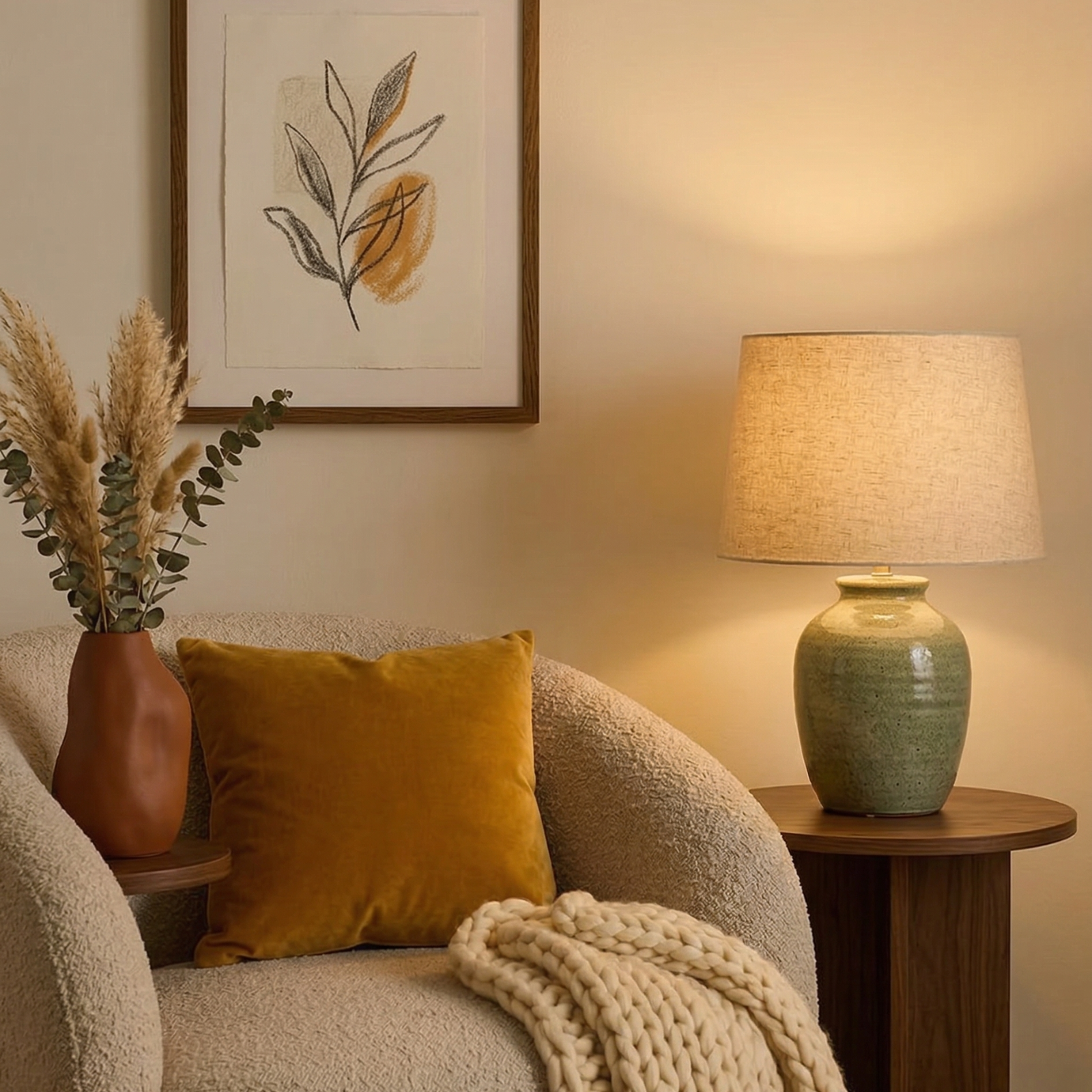 Our focus is mainly on lighting and carefully chosen home pieces that add warmth, texture, and atmosphere to everyday spaces. We are especially inspired by designs that feel timeless, easy to style, and natural within the home, whether it is a lamp that creates a softer evening glow or a decorative piece that adds a subtle finishing touch.
